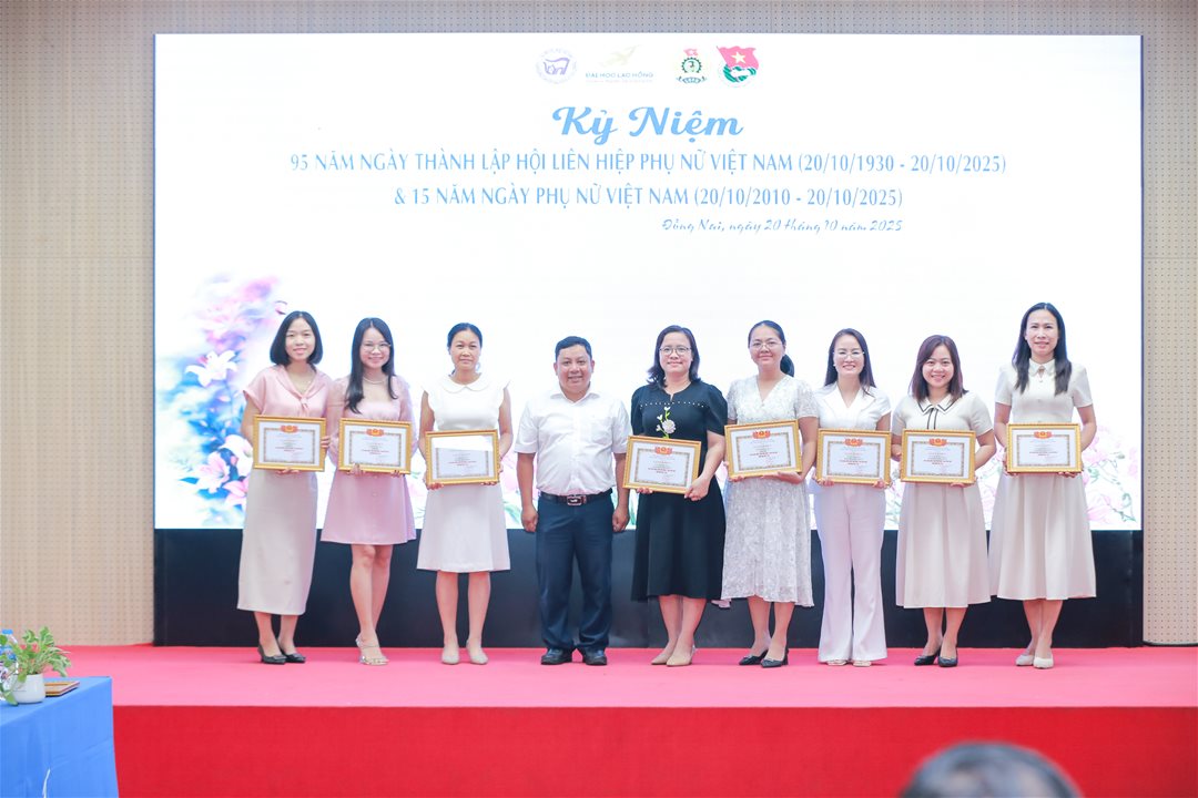 Một trong những điểm nhấn quan trọng của buổi lễ là phần tuyên dương 59 nữ NGNLĐ đạt danh hiệu “Giỏi việc nước – Đảm việc nhà” năm học 2024–2025. Đây là những gương mặt điển hình, vừa hoàn thành xuất sắc nhiệm vụ chuyên môn, vừa chu toàn trách nhiệm trong gia đình – minh chứng sống động cho phẩm chất cao quý của người phụ nữ Việt Nam trong thời đại mới.