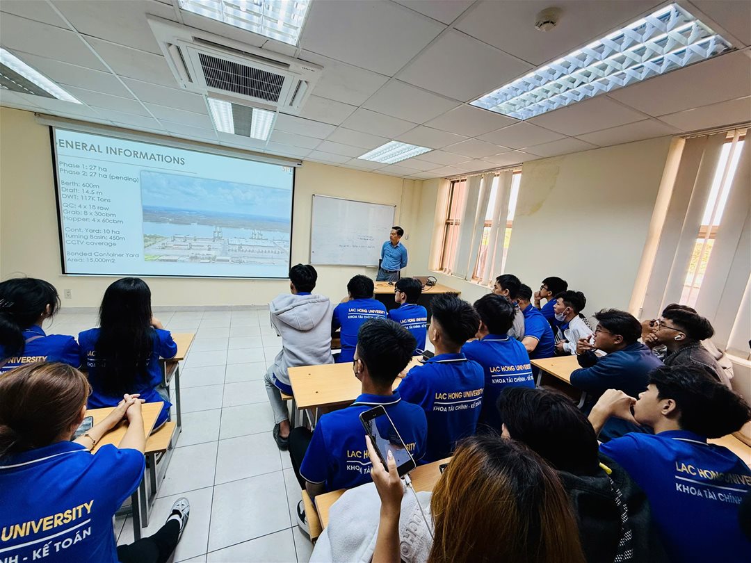 Nhằm tăng cường trải nghiệm thực tế và rút ngắn khoảng cách giữa lý thuyết và ứng dụng trong ngành Logistics & Quản lý chuỗi cung ứng, sáng ngày 03/12/2025, Khoa Tài chính – Kế toán, Trường Đại học Lạc Hồng đã tổ chức chuyến tham quan – thực hành học phần tại Cảng Container Quốc tế SP-PSA dành cho 42 sinh viên lớp 25LG115. Hoạt động nằm trong khuôn khổ học phần Nhập môn Logistics và Quản lý chuỗi cung ứng, góp phần củng cố kiến thức, mở rộng tư duy và giúp sinh viên tiếp cận môi trường làm việc thực tiễn. Chuyến đi do cô TS. Nguyễn Thị Bạch Tuyết – Trưởng ngành Logistics và Quản lý chuỗi cung ứng, cùng cô Lê Thùy Dung – Bộ phận Thực tập & Quan hệ doanh nghiệp đồng hành cùng sinh viên.