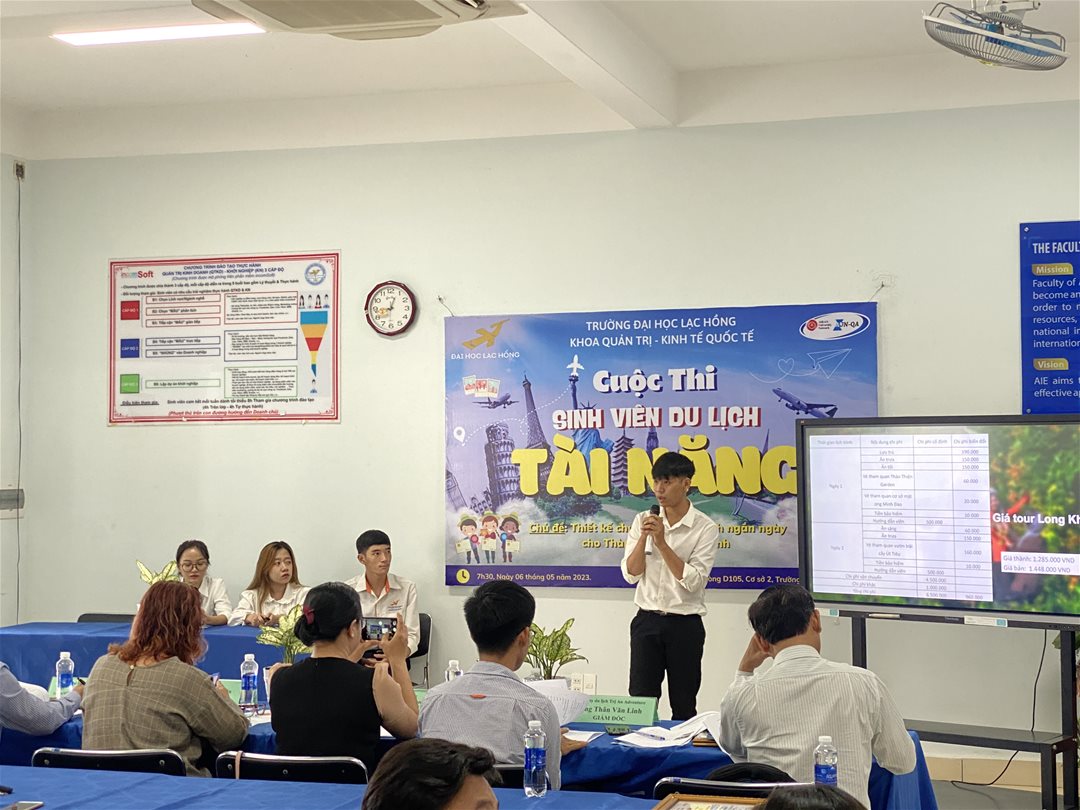 Trong bối cảnh ngành du lịch không ngừng phát triển và đòi hỏi nguồn nhân lực chất lượng cao, sinh viên không chỉ cần kiến thức lý thuyết mà còn phải có kỹ năng thực tế, sự sáng tạo và khả năng làm việc với doanh nghiệp. Nhằm tạo nên một sân chơi bổ ích, giàu tính trải nghiệm, Khoa Quản trị – Kinh tế Quốc tế đã tổ chức thành công 03 mùa cuộc thi Sinh viên Du lịch Tài năng. Đây là cơ hội để sinh viên được "tỏa sáng" bằng chính tài năng, sự tự tin, cũng như những ý tưởng sáng tạo trong lĩnh vực du lịch.
