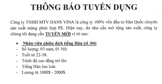 2. Nơi làm viêc: KCN Giang Điền, Trảng Bom, T. Đồng Nai