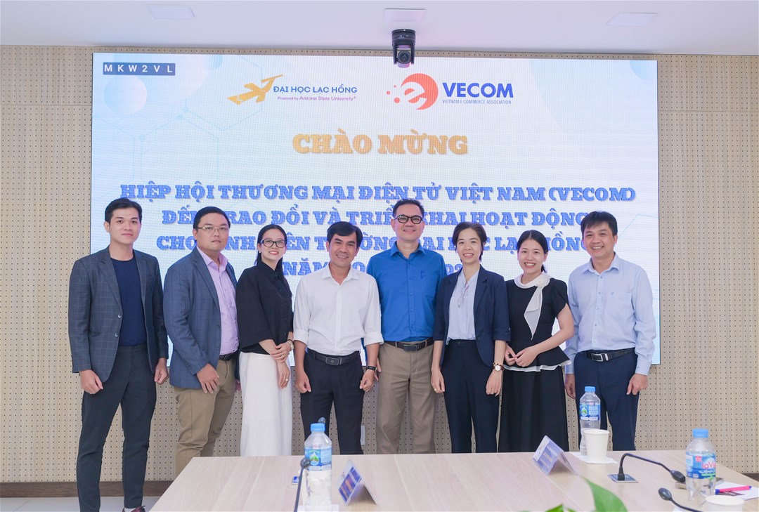 Ngày 10/11/2025, Hiệp hội Thương mại điện tử Việt Nam (VECOM) đã có buổi làm việc với Khoa Công nghệ Thông tin – Trường Đại học Lạc Hồng nhằm trao đổi, định hướng hợp tác và triển khai các hoạt động hỗ trợ sinh viên ngành Thương mại điện tử trong thời gian tới.