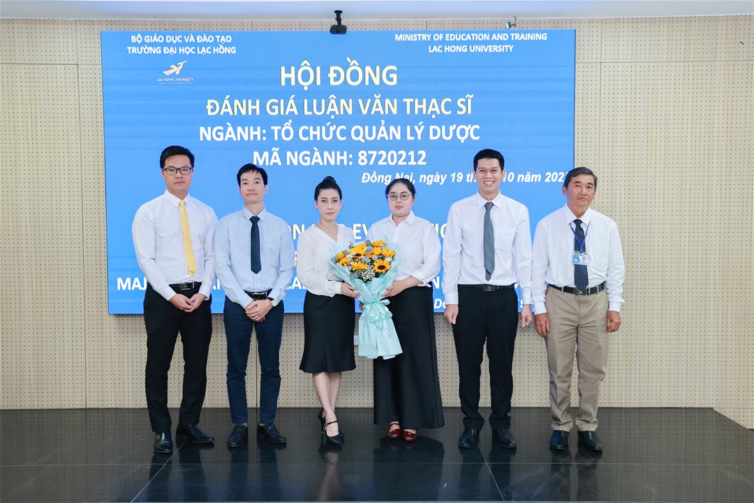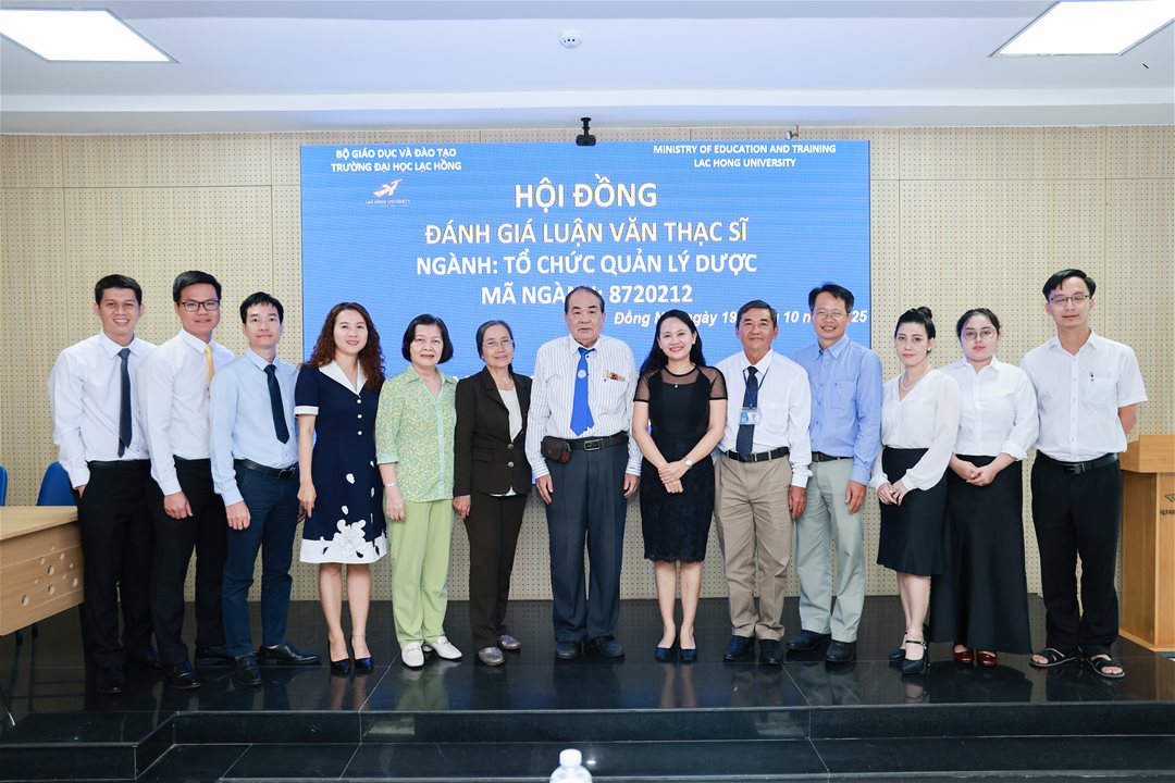 Ngày 19 tháng 10 năm 2025, tại phòng B203 cơ sở 1 của Trường Đại học Lạc Hồng (LHU), 06 học viên thuộc ngành Tổ chức quản lý dược đã hoàn thành phần trình bày và bảo vệ luận văn thạc sĩ trước hội đồng chuyên môn. Buổi bảo vệ diễn ra trong không khí trang nghiêm, học thuật và chuyên nghiệp, đánh dấu cột mốc quan trọng trong quá trình đào tạo sau đại học tại nhà trường.