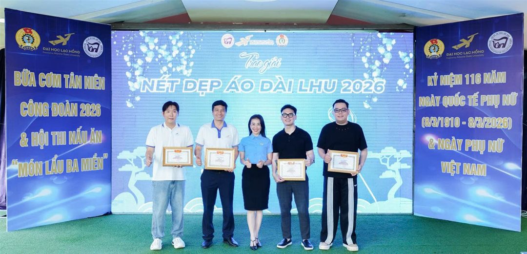 Sáng ngày 07/03/2026 tại Hội quán Trấn Biên, Công đoàn Trường Đại học Lạc Hồng phối hợp cùng Hội Nữ trí thức đã tổ chức Lễ trao giải Cuộc thi ảnh “Nét đẹp Áo dài LHU năm 2026”. Sự kiện là đóa hoa tươi thắm chào mừng 116 năm Ngày Quốc tế Phụ nữ (08/3) và Ngày Quốc tế Hạnh phúc.
