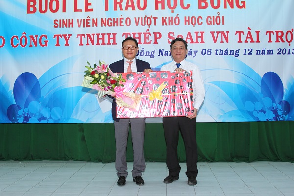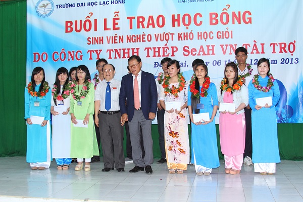 The  scholarship awarding ceremony was organized at Room A 301 – Campus 1 – Lac Hong University with the participation of Mr. Phan Van Loi - Chairman of Dong Nai provincial Education Union - representative of provincial Department of Education and Training, SeAH Steel Co.'s Mr. Nam Hyung Kun - General Manager, Mr. Tran Tan Phat - Director  of Human Resources and Vo Van Thanh -  Chairman of Trade Union. For LHU, there were Dr. Diep Cam Thu - Chairman of Trade Union, Vice Rector; Dr. Nguyen Van Nam - Vice Chairman of Trade Union, Vice Rector; Tran Dung, M.A - Director of Enterprise Relations and Student Support Center and representatives of departments and units.