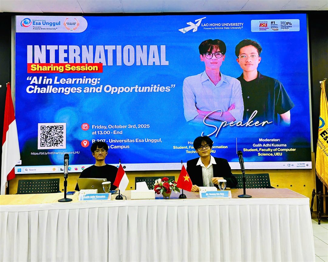 The MoA became even more meaningful as student Hoang Gia Huy from the Faculty of Information Technology honorably represented LHU’s young generation at the “AI in Learning – Challenges and Opportunities” Forum. With confidence, in-depth knowledge, and creative thinking, Gia Huy delivered a comprehensive perspective on the opportunities and challenges of integrating AI into education.