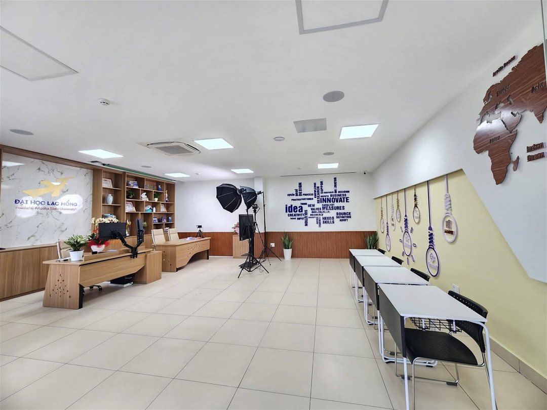 Ngoài ra, Phòng thực hành Quản trị - Marketing được thiết kế như một agency thu nhỏ, một studio chuyên nghiệp để các bạn sinh viên thỏa sức sáng tạo. Với thiết kế này cực kỳ linh hoạt, dễ dàng di chuyển để setup thành các nhóm làm việc, họp chiến lược hay brainstorm ý tưởng. Qua đó, để những ý tưởng kinh doanh được tỏa sáng.