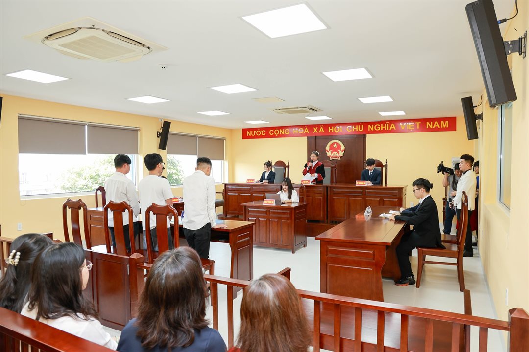 Tại đây, sinh viên ngành Luật và Luật Kinh tế sẽ trực tiếp hóa thân thành thẩm phán, luật sư, kiểm sát viên hoặc các bên đương sự. Phòng Diễn án không chỉ đơn thuần là một phòng học, mà còn là “sân khấu” để sinh viên tự tin trình bày, lập luận, phản biện và rèn luyện các kỹ năng hành nghề cốt lõi ngay từ khi còn ngồi trên ghế nhà trường.