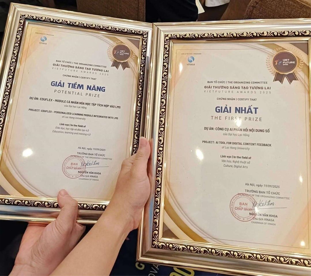 Thành công tại VietFuture Awards 2025 là minh chứng cho bản lĩnh, trí tuệ và sự sáng tạo không ngừng của sinh viên Trường Đại học Lạc Hồng. Đây cũng là động lực để Khoa Công nghệ Thông tin tiếp tục nuôi dưỡng phong trào nghiên cứu khoa học, khởi nghiệp và đồng hành cùng sinh viên trên hành trình tạo ra những giải pháp công nghệ vì cộng đồng.