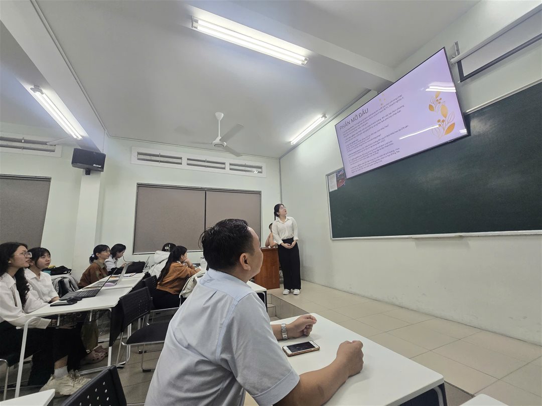 Trong khuôn khổ buổi báo cáo, mỗi sinh viên trình bày tóm tắt mục tiêu nghiên cứu, phương pháp, kết quả đạt được và kế hoạch hoàn thiện luận văn, đồng thời lắng nghe nhận xét, phản biện và định hướng điều chỉnh từ các giảng viên. Việc tổ chức báo cáo trực tiếp tại tiểu ban giúp tăng tính tương tác, giúp sinh viên rèn luyện kỹ năng trình bày học thuật, phản biện và bảo vệ luận điểm nghiên cứu – những kỹ năng cần thiết cho buổi bảo vệ chính thức sắp tới.
