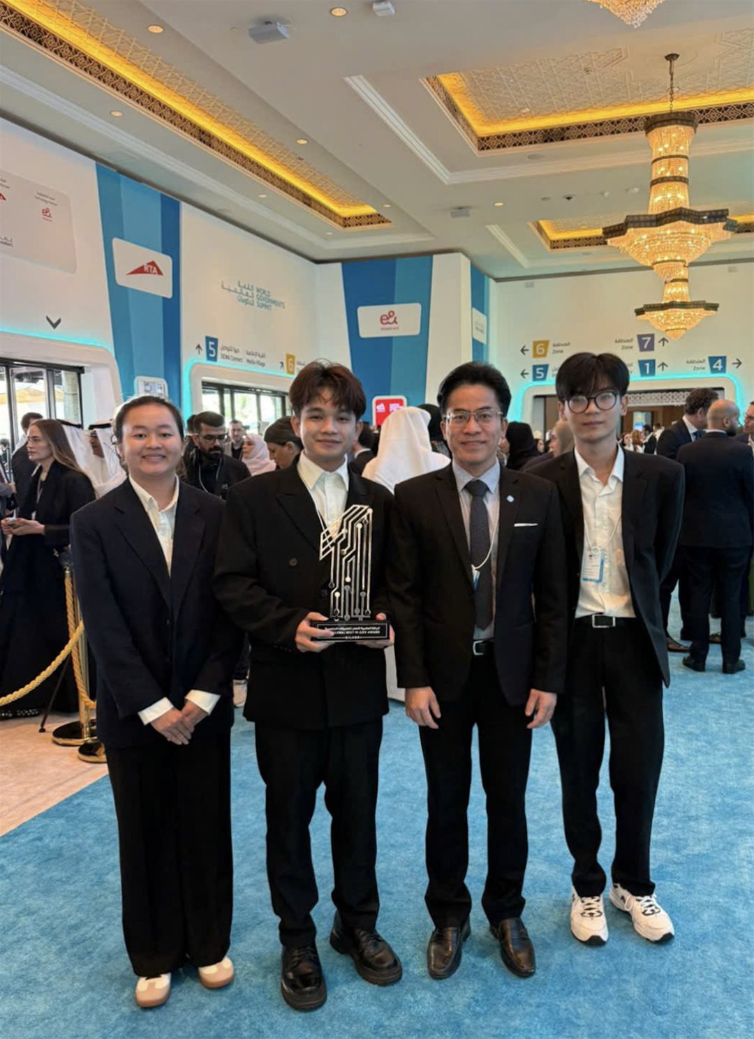 Lecturers and students receiving the award in Dubai