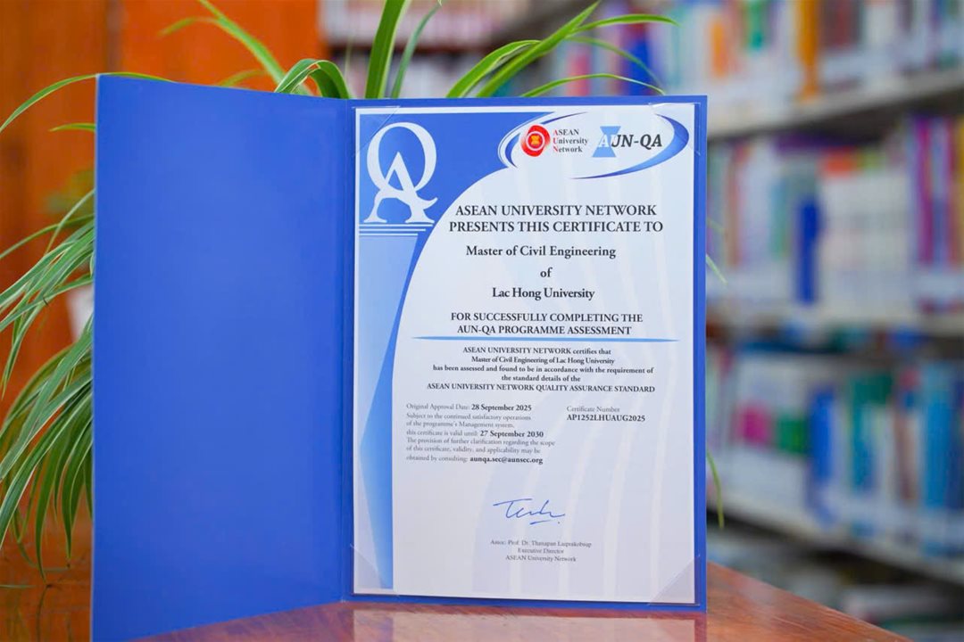 Trường Đại học Lạc Hồng (LHU) vừa chính thức đạt chứng nhận AUN-QA cho bốn chương trình thạc sĩ đầu tiên, khẳng định cam kết mạnh mẽ với giáo dục chất lượng và phát triển bền vững trong khu vực Đông Nam Á.